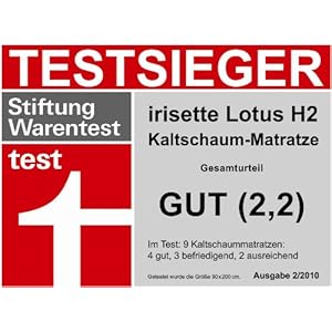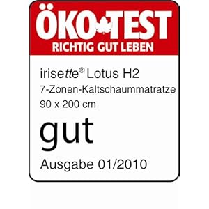 Badenia Bettcomfort 03888330159 Kaltschaummatratze Irisette Lotus H2 Testsieger Stiftung Warentest Gesamturteil GUT Ausgabe 02/2010, Öko Test GUT Ausgabe 01/2010, 90 x 200 cm